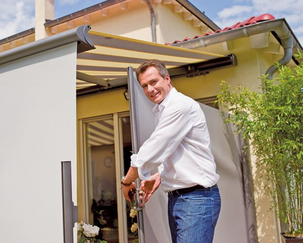 The stylish side awning for complete privacy and protection from the elements. The Paravento can easily be fitted to any house wall or patio with the corresponding attachments. Fully retracted, this side awning is concealed entirely in the aluminium cassette for an elegant solution when its services are no longer required. Weinor’s Paravento is the superior alternative to fences, walls and hedges.